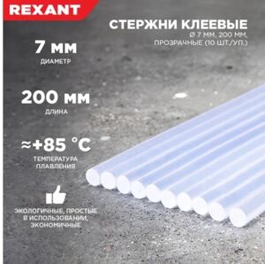 Стержни клеевые Ø7мм, 200мм, прозрачные (10 шт/уп), хедер REXANT