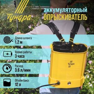 Опрыскиватель аккумуляторный ТУНДРА, 12В, 8 Ач, 12 л, индикатор заряда, 3 насадки