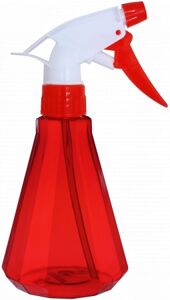 Флакон с распылителем прозрачный красный граненый конус (фл 330 мл)
